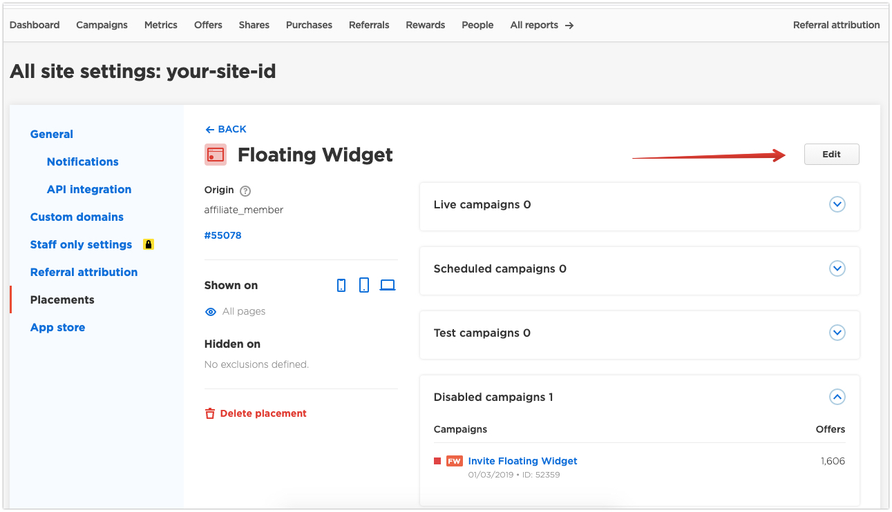 1. Click on Menu and then on Campaign Placements: