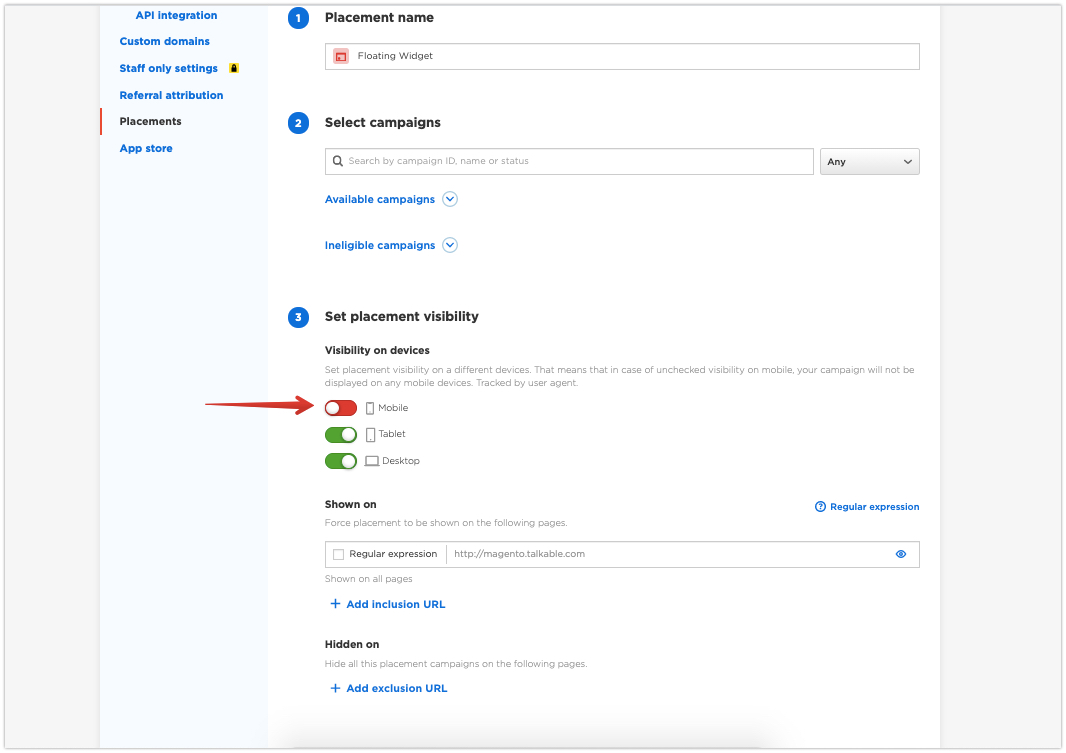 You can easily hide the floating widget on mobile by following these steps: