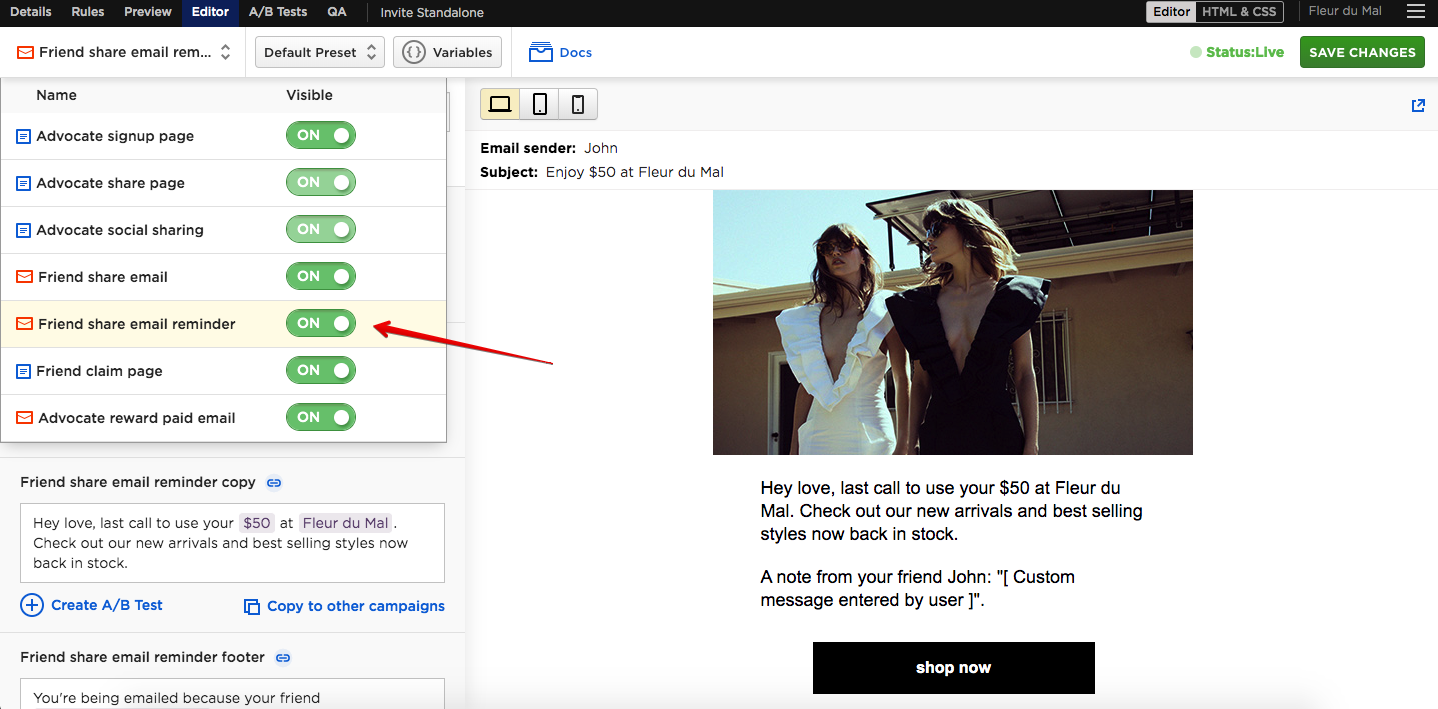 3. Select the email view (i.e.Friend Share Email Reminder):
