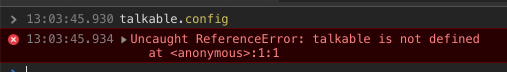 Fail - You will see the next error: Uncaught ReferenceError: talkable is not defined: