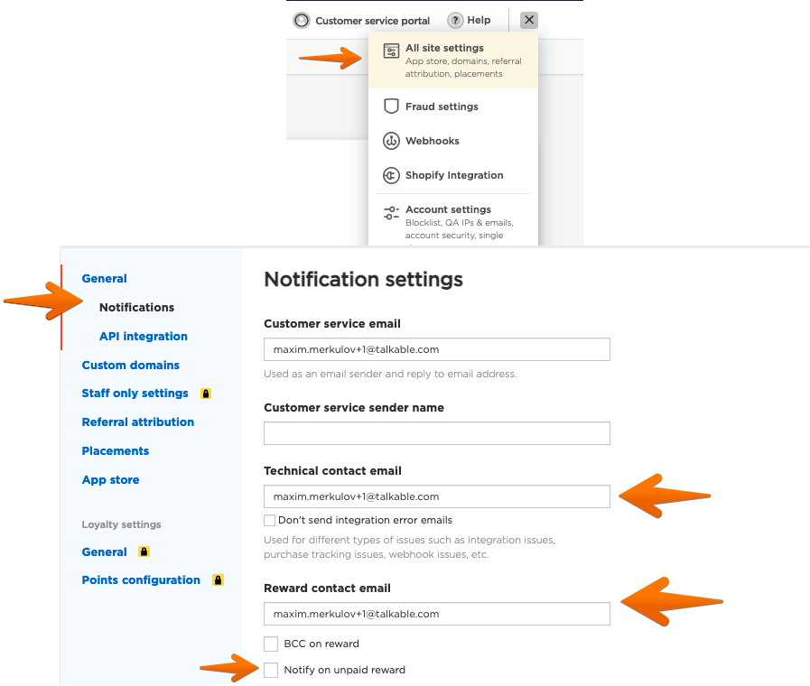 How can I disable email notifications from Talkable? Print